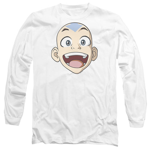 Avatar The Last Airbender Big Aang Face Mens Long Sleeve Shirt White