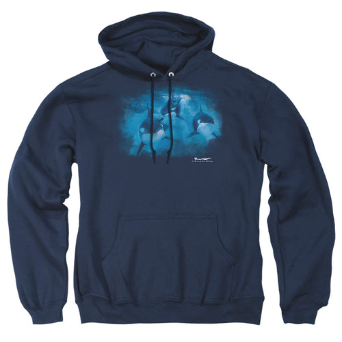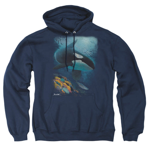 Wildlife Salmon Hunter Orca Mens Hoodie Navy