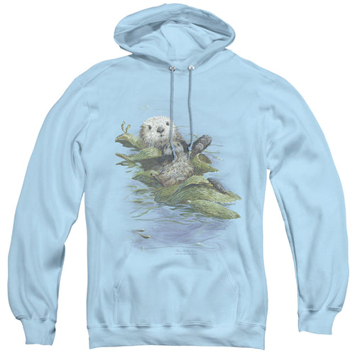 Wildlife Kelp Cradle Otters Mens Hoodie Light Blue