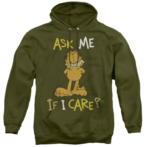Garfield Ask Me If I Care Mens Hoodie Military Green