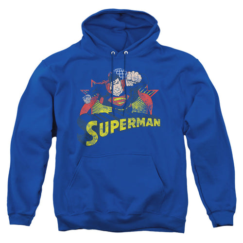 Justice League Of America Superman Rough Distress Mens Hoodie Royal