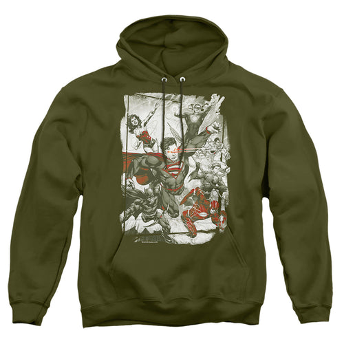 Justice League Of America Green And Red Mens Hoodie Military Green