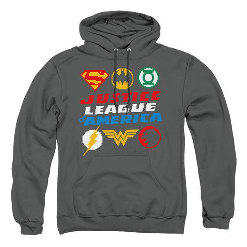 Justice League Of America Pixel Logos Mens Hoodie Charcoal