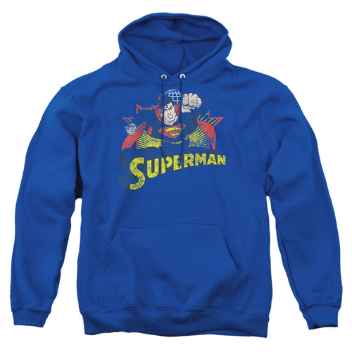 Justice League Of America Superman Rough Distress Mens Hoodie Royal Blue