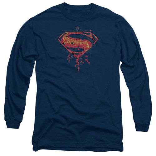 Batman V Superman Tech Super Logo Mens Long Sleeve Shirt Navy