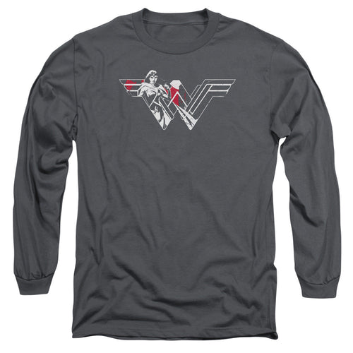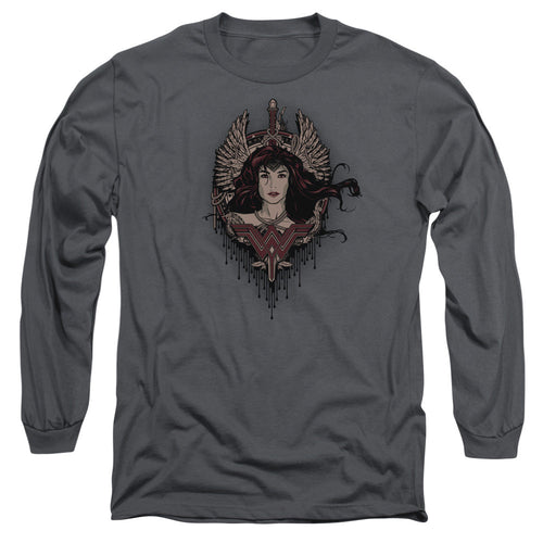 Batman V Superman Winged Goddess Mens Long Sleeve Shirt Charcoal