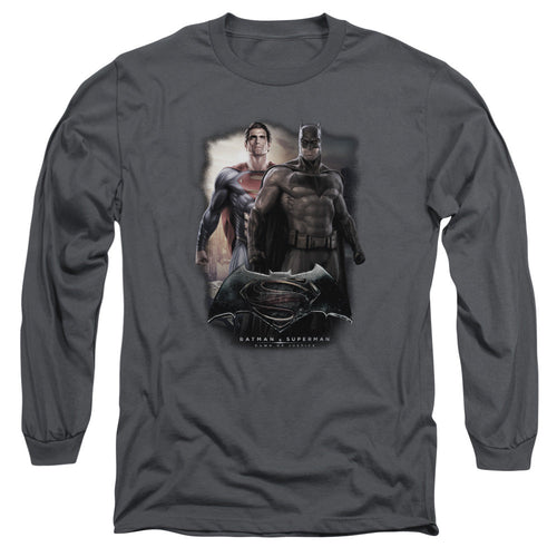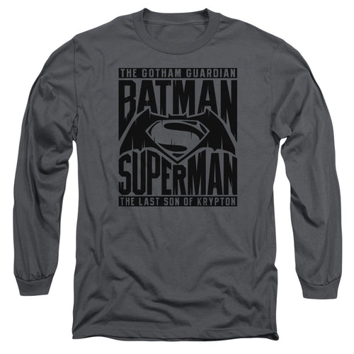 Batman Vs Superman Dawn Mens Long Sleeve Shirt Charcoal