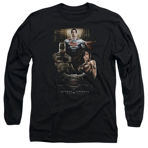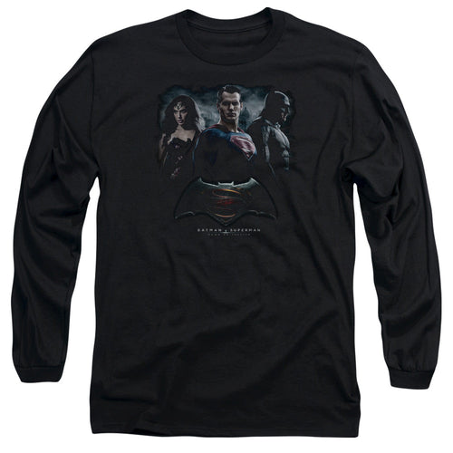Batman V Superman Three In Action Mens Long Sleeve Shirt Black