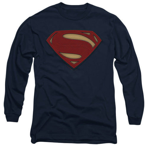 Batman V Superman Superman Costume Shield Mens Long Sleeve Shirt Navy