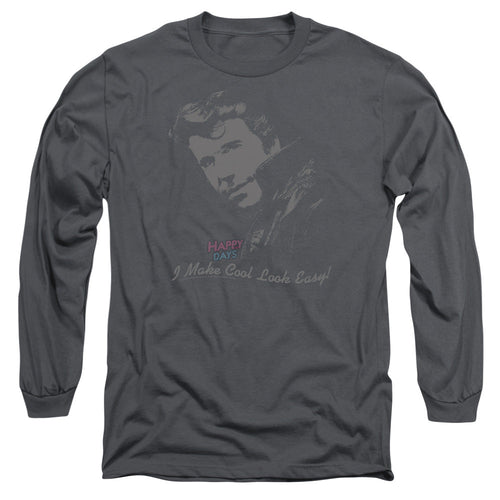 Happy Days Cool Fonz Mens Long Sleeve Shirt Charcoal Officially Licensed