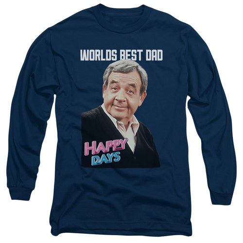 Happy Days Best Dad Mens Long Sleeve Shirt Navy Officially Licensed