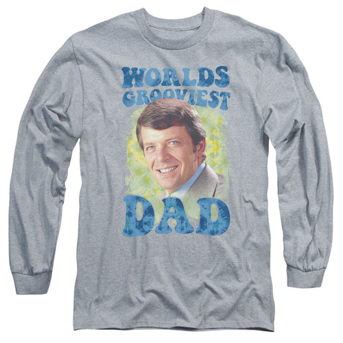 Brady Bunch Worlds Grooviest Mens Long Sleeve Shirt Athletic Heather Officially Licensed