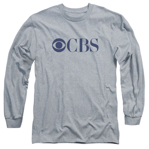 Cbs Logo Mens Long Sleeve Shirt Athletic Heather Officially Licensed