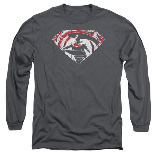 Batman V Superman Logo Mens Long Sleeve Shirt Charcoal