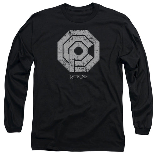 Robocop Distressed Ocp Logo Mens Long Sleeve Shirt Black Officially Licensed