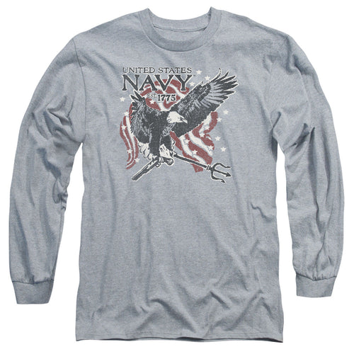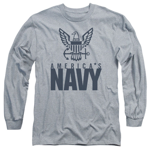 Navy Eagle Logo Mens Long Sleeve Shirt Athletic Heather