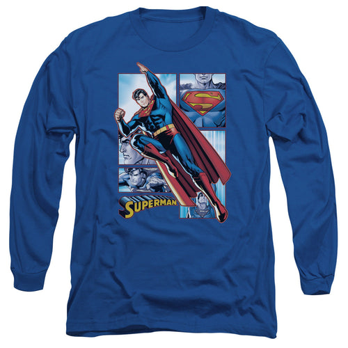 Justice League Of America Superman Panels Mens Long Sleeve Shirt Royal Blue