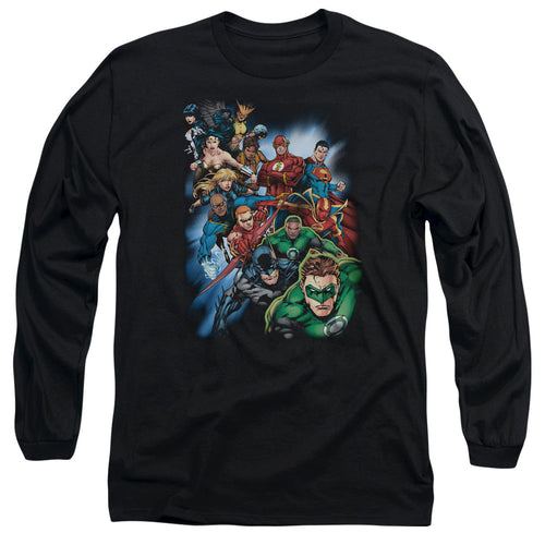 Jla Heroes Unite Mens Long Sleeve Shirt Black Officially Licensed