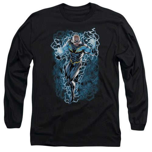 Jla Black Lightning Bolts Mens Long Sleeve Shirt Black Officially Licensed