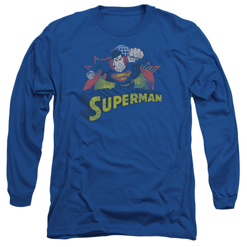 Justice League Of America Superman Rough Distress Mens Long Sleeve Shirt Royal Blue