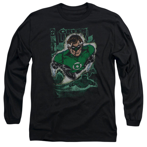 Jla Green Lantern #1 Distress Mens Long Sleeve Shirt Black Officially Licensed