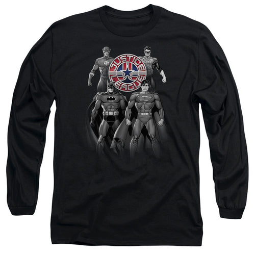 Jla Heroes United Mens Long Sleeve Shirt Black Officially Licensed