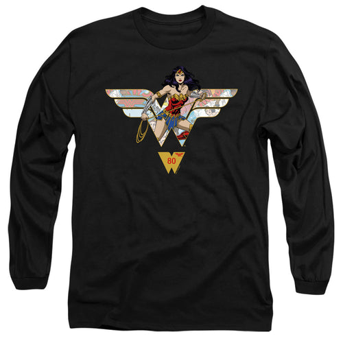 Wonder Woman Ww 80Th Collage Logo Mens Long Sleeve Shirt Black