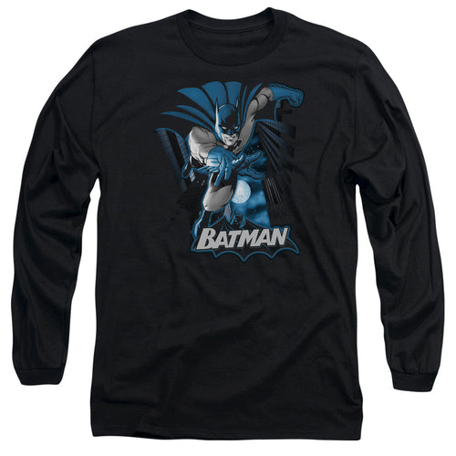 Jla Batman Blue & Gray Mens Long Sleeve Shirt Black Officially Licensed