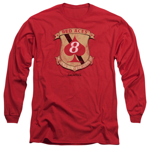 Bsg Red Aces Badge Mens Long Sleeve Shirt Red Officially Licensed