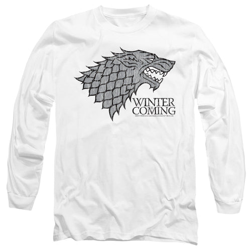 Game Of Thrones Startk Winter Is Coming On White Mens Long Sleeve Shirt White Officially Licensed