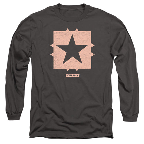 Scrabble Free Space Mens Long Sleeve Shirt Charcoal Officially Licensed
