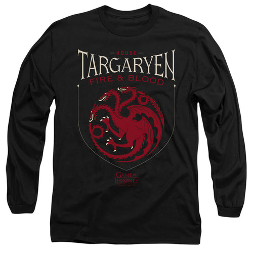 Game Of Thrones House Targaryen Sigil Mens Long Sleeve Shirt Black Officially Licensed
