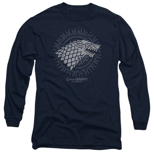 Game Of Thrones Stark Burst Sigils Mens Long Sleeve Shirt Navy Officially Licensed