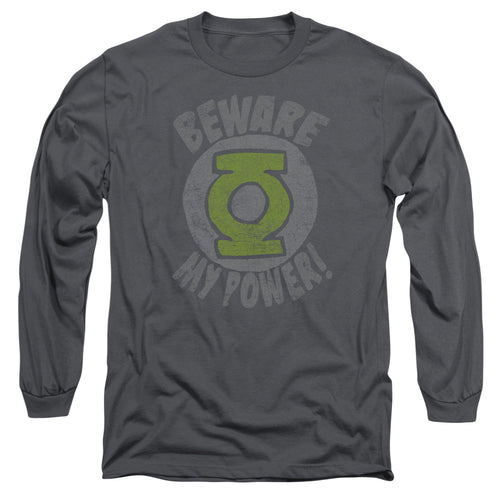 Green Lantern Beware Mens Long Sleeve Shirt Charcoal Officially Licensed