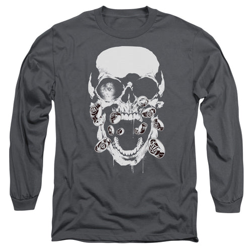 Green Lantern Black Lantern Skull Mens Long Sleeve Shirt Charcoal Officially Licensed