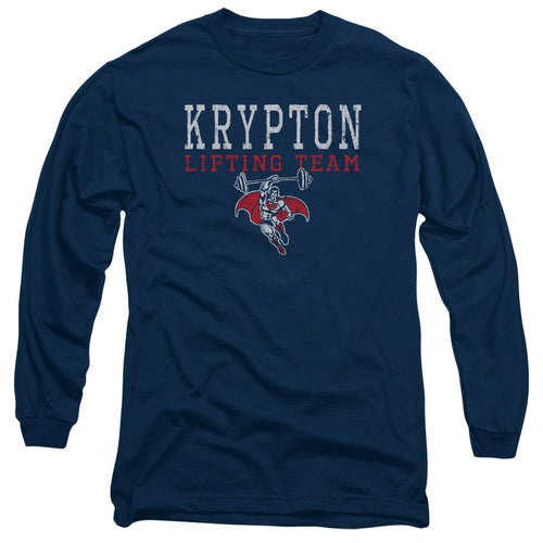 Dco Krpton Lifting Mens Long Sleeve Shirt Navy Officially Licensed