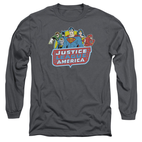 Dc 8 Bit League Mens Long Sleeve Shirt Charcoal Officially Licensed