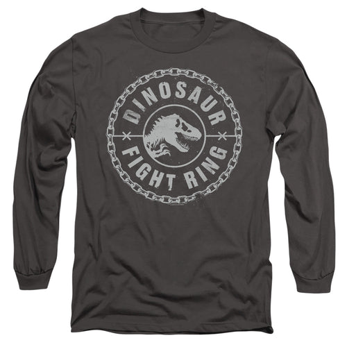 Jurassic World Dino Fight Ring Mens Long Sleeve Shirt Charcoal Officially Licensed