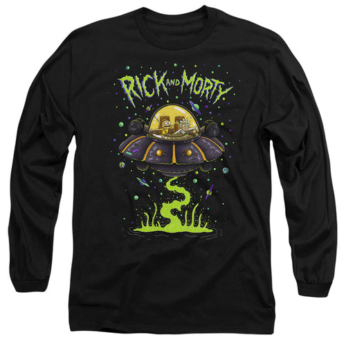 Rick And Morty Ufo Mens Long Sleeve Shirt Black Officially Licensed
