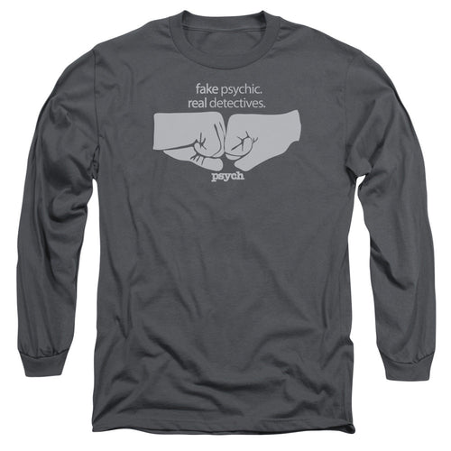 Psych Fist Bump Mens Long Sleeve Shirt Charcoal