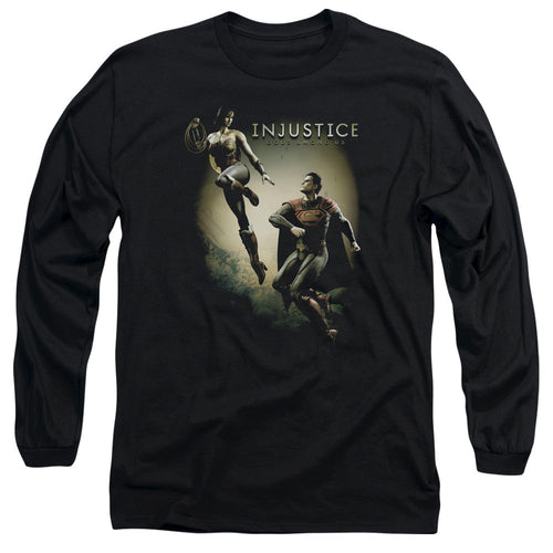 Injustice Gods Among Us Key Art Mens Long Sleeve Shirt Black Officially Licensed