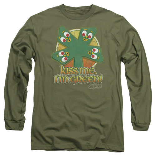 Gumby Kiss Me Mens Long Sleeve Shirt Military Green Officially Licensed