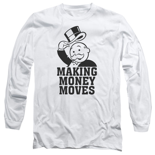 Monopoly Money Moves Mens Long Sleeve Shirt White