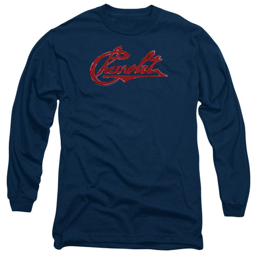 Chevrolet Chevrolet Script Distressed Mens Long Sleeve Shirt Navy Officially Licensed