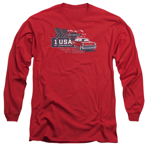 Chevrolet See The Usa Mens Long Sleeve Shirt Red Officially Licensed
