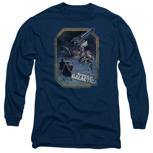 Battlestar Galactica Poster Iron On Mens Long Sleeve Shirt Navy Blue