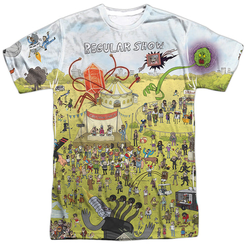 Regular Show Group Shot Front Back Print-Mens Poly Crew T Shirt-White