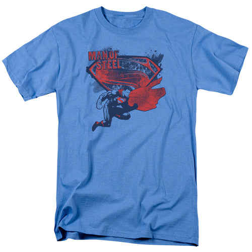 Man Of Steel Sheild Splat Mens T Shirt Carolina Blue