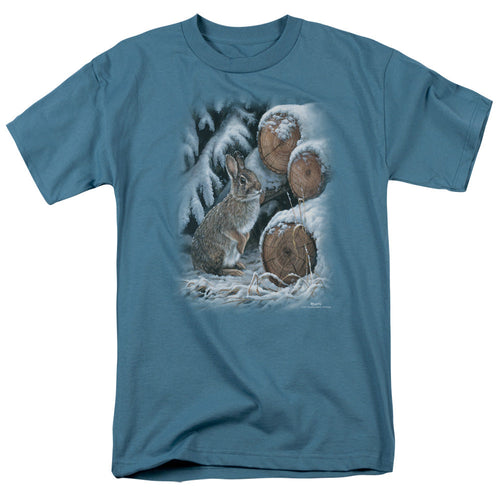 Wildlife Wood Pile Rabbit Mens T Shirt Slate