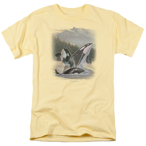 Wildlife Breaching Orcas Mens T Shirt Banana